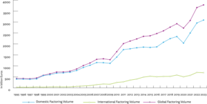 金融庁の委託による「貸金業利用者に関する調査・研究」では、ファクタリングの認知率は22.1%でしたが、国際ファクタリング連盟・FCI(Factors Chain International)によると、日本でのファクタリング利用総額は年々増加傾向にあります。