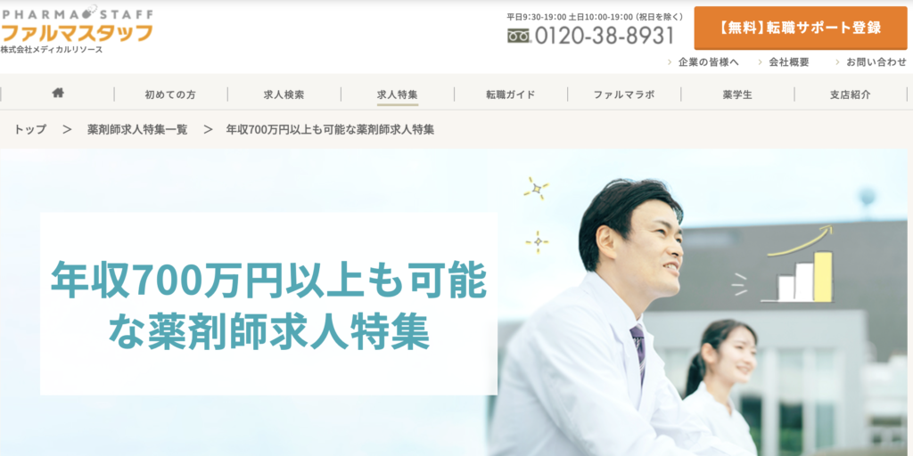 調剤業界大手「日本調剤」のグループ会社「メディカルリソース」が運営しているため、調剤薬局の求人が豊富なのが1番の特徴です。